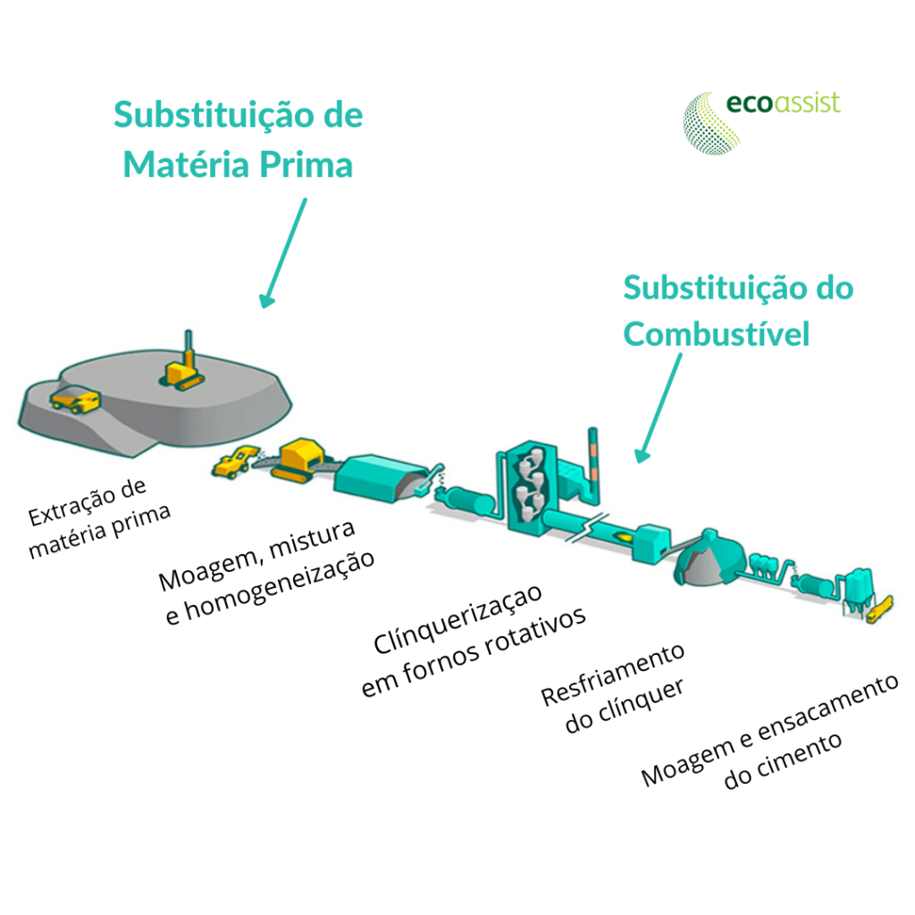 coprocessamento: o resíduo pode ser usado para a incineração e geração de energia, mas também, como matéria prima para se misturar ao clínquer.